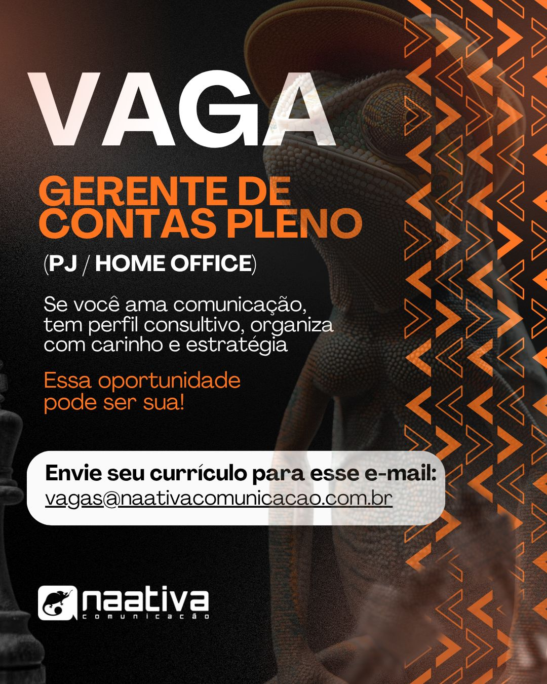 A Naativa Comunicação está em busca de uma pessoa para ocupar o cargo de Gerente de Contas Pleno