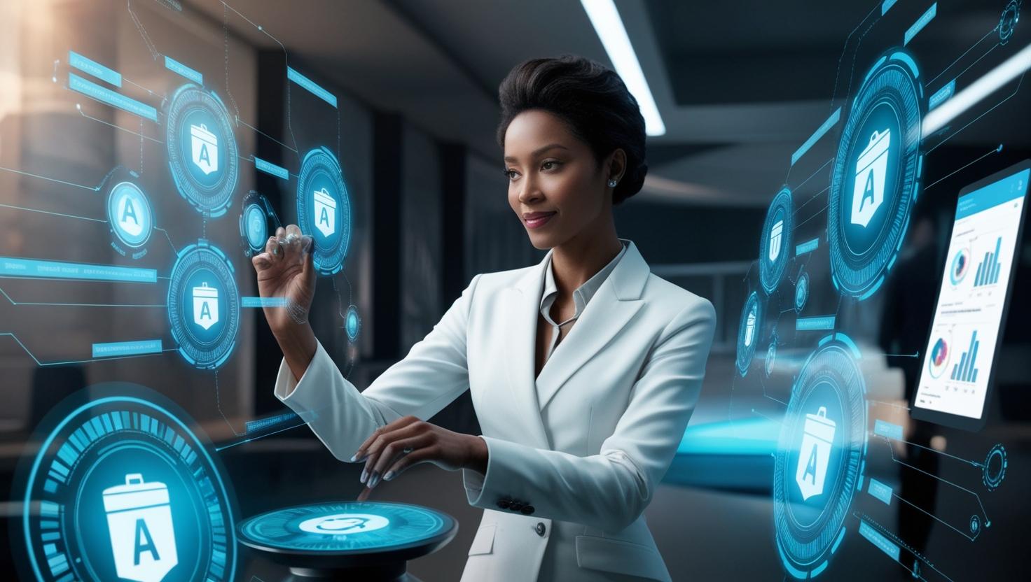 Gere uma imagem que represente o Profissional de Marketing dos tempos atuais, estratégico, antenado, usuário de inteligência artificial e apostando no fator humano. Cenário futurista. Publicado 5 de maio de 2025 às 1472 × 832 em Dia do Profissional do Marketing: 8 especialistas compartilham suas apostas para os próximos anos Imagem gerada pela IA do Canva