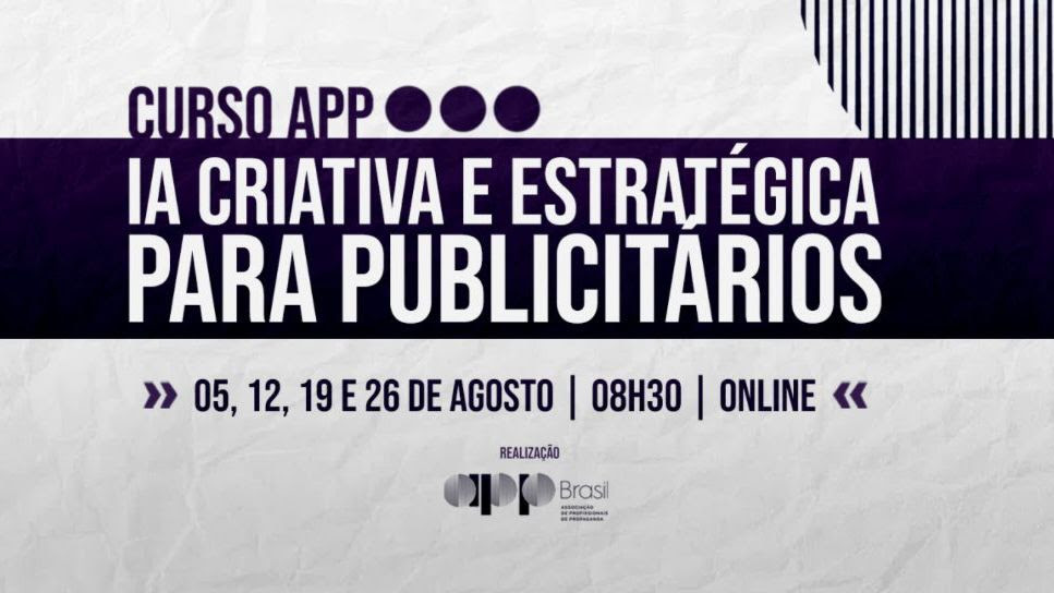 A APP Brasil (Associação de Profissionais de Propaganda) promove, em agosto, o curso “IA Criativa e Estratégica para Publicitários”, voltado para capacitar profissionais do mercado de comunicação no uso ético, estratégico e produtivo da inteligência artificial. Com carga horária total de 8 horas, dividida em quatro encontros online e interativos (nos dias 5, 12, 19 e 26 de agosto, das 8h30 às 10h30), o curso terá certificação e reunirá nomes de referência em criatividade, inovação, direito digital e inteligência artificial.