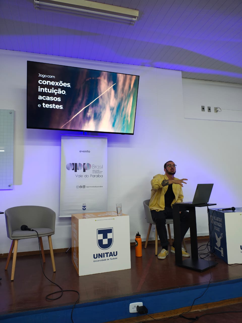 Terminada a primeira aula desse curso e já com a cabeça a mil peguei o carro e dirigi por duas horas. Fui até Taubaté para participar do evento da APP Vale (vocês devem saber que sou parte da diretoria, né?), o Warming Fest’up, que aconteceu na Unitau.