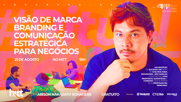 O HITT – Hub de Inovação Tecnológica de Taubaté realiza, no dia 21 de agosto, às 19h, o #RitualDoHITT “Visão de marca: Branding e comunicação estratégica para negócios”, em parceria com a APP RM Vale do Paraíba. O evento é gratuito, aberto ao público e voltado a startups, empreendedores, profissionais e estudantes interessados em aprimorar a gestão e o posicionamento de marcas. As inscrições podem ser feitas online.