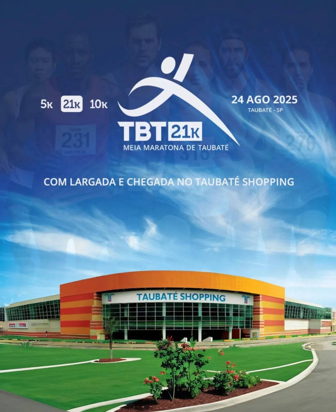 A 2ª edição da TBT21K Meia Maratona de Taubaté acontece neste domingo (24), com largada e chegada no Taubaté Shopping. O evento irá reunir aproximadamente mil corredores nas disputas de 21km, 10km e 5km, reforçando o calendário esportivo regional.