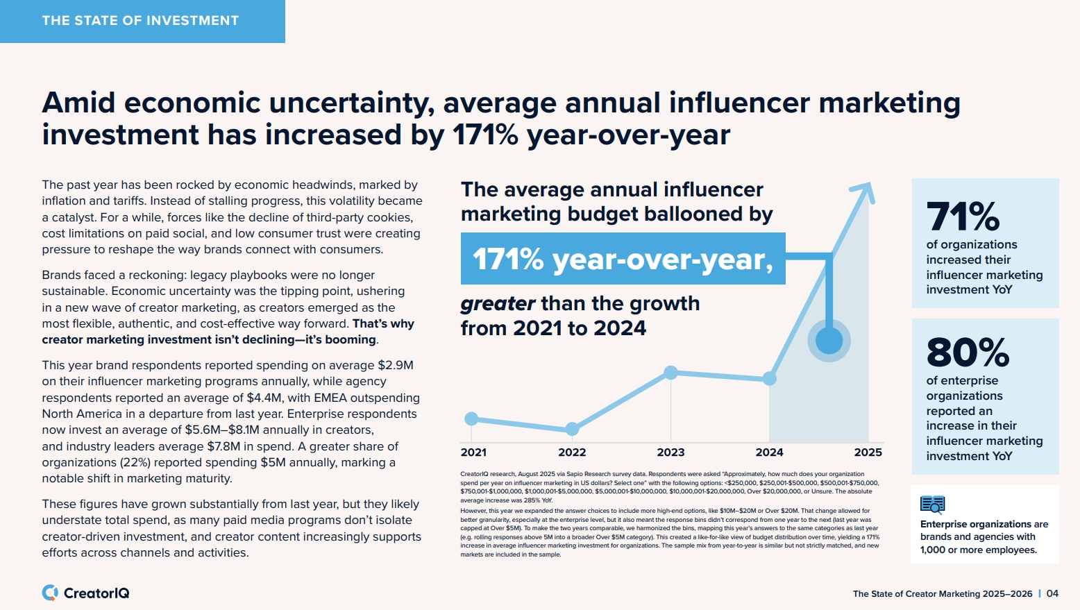 The State of Creator Marketing Report 2025-2026 – CreatorIQ Investimentos em marketing de influência aumentam 171% em relação a 2024