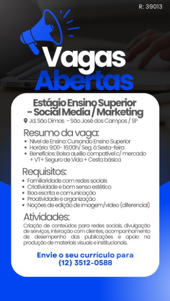 Vaga para quem é organizado(a), ágil e tem interesse em trabalhar com mídia e produção publicitária