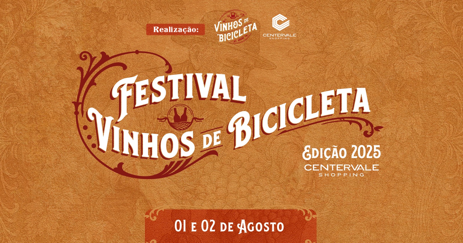 Nos dias 1 e 2 de agosto, o CenterVale se transforma em um ponto de encontro para os apaixonados por vinhos. Pela primeira vez, o centro de compras será palco do Festival Vinhos de Bicicleta, uma das maiores feiras vinícolas do país, com estrutura ampliada e mais 400 rótulos nacionais e internacionais disponíveis para degustação.