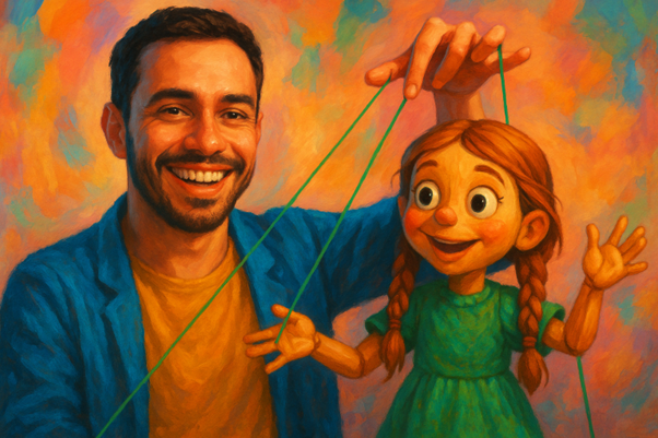 ● Gabriel faz perguntas abertas, mas direcionadas — a criança dificilmente dará respostas fora do que ele espera.